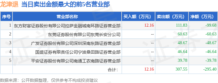 从龙虎榜公布的当日买卖数据来看,宁波桑田路等知名游资榜上有名。(知名游资宁波桑田路一般指国盛证券有限责任公司宁波桑田路证券营业部席位,根据市场资料整理,仅供参考)