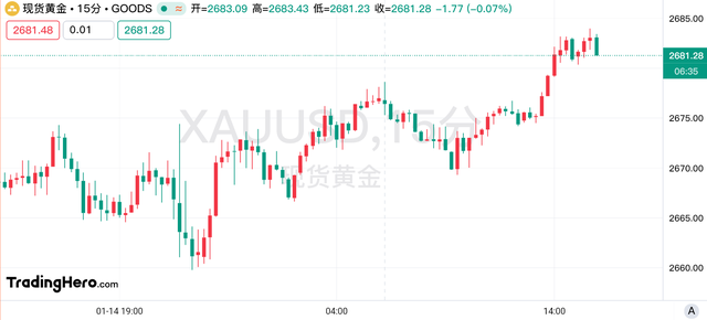 截至发稿,周三现货黄金小幅上涨,目前在2680美元/盎司附近徘徊。美国CPI报告发布前市场普遍持谨慎态度。
